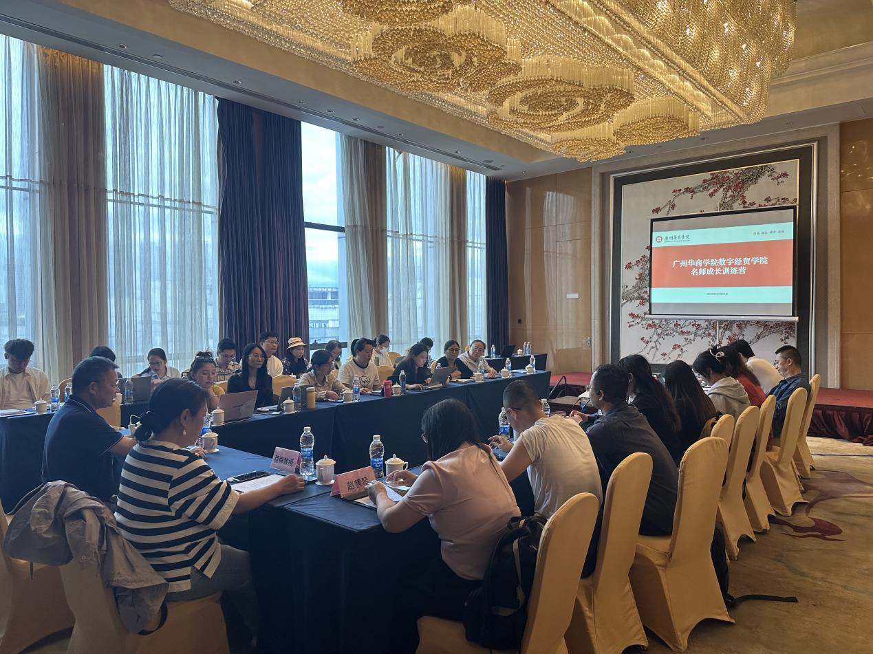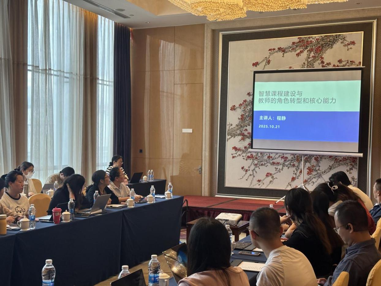 为积极响应教育数字化转型战略,助力教师适应智慧教育发展新趋势,2025年10月22日,数字经贸学院于万达嘉华酒店成功举办名师成长训练营专题研讨会。本次会议以"智慧课程建设中的教师角色转型与核心能力"为主题,邀请程静教授担任主讲嘉宾。数字经贸学院院长李广明、副院长李伟、院长助理石立、赵慧琴及学院中青年教师代表参加会议,会议由院长李广明主持。