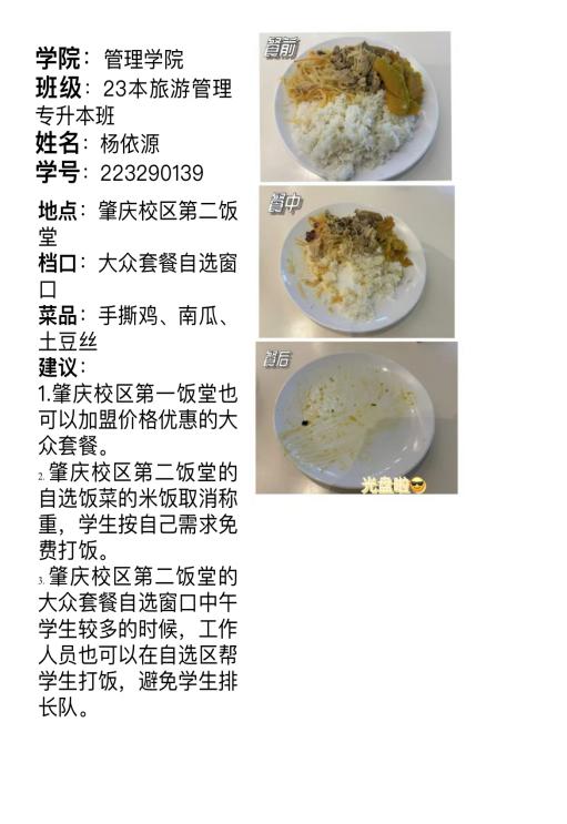肇庆校区和广州校区同学们的光盘行动以及对食堂的宝贵建议