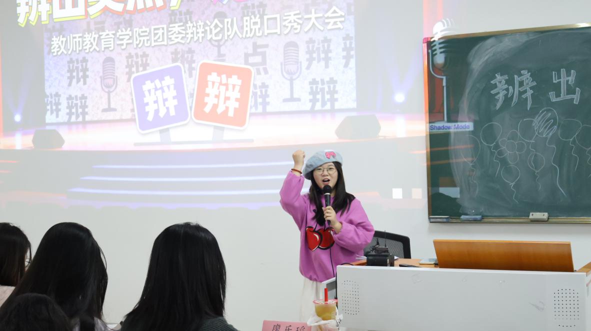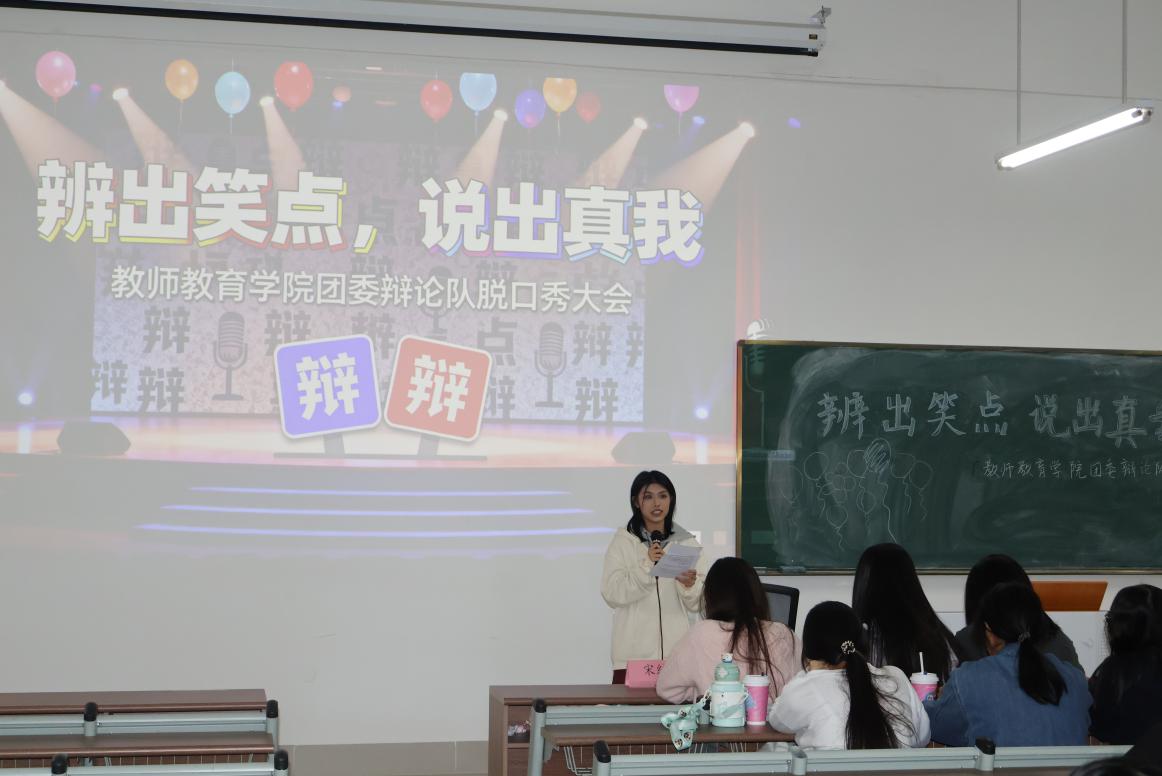 2025年11月25日(星期二),教师教育学院团委辩论队举办的第一届“辩”出笑点,说出真我脱口秀大会欢乐落幕,青春风采尽情绽放。活动以轻松幽默的形式搭建青春表达平台,吸引众多学子参与,为校园注入满满活力。