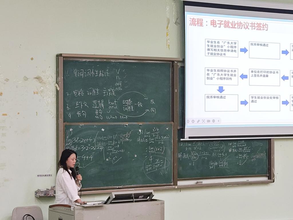 接着,辅导员陈楚玲老师和何涛老师就毕业生们关心的就业手续办理、就业信息获取渠道、就业政策、就业协议签订等方面内容作了具体讲解,并提醒同学们注意各类招聘时间节点与材料准备要求,表示将全力为同学们的毕业、就业等工作提供支持与服务。同时,重点提醒同学们在求职过程中要警惕各类招聘诈骗行为,保护自身权益。