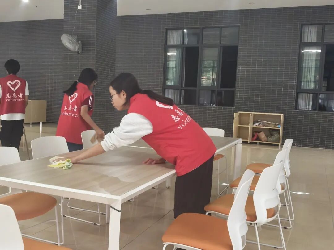 本次活动以分区协作为主要形式,志愿者们提前到达现场签到并领取清洁工具,在工作人员的安排下分组负责不同区域的清扫任务。大家分工明确、配合默契,对学业帮扶中心内的公共学习区域展开了全面清洁。