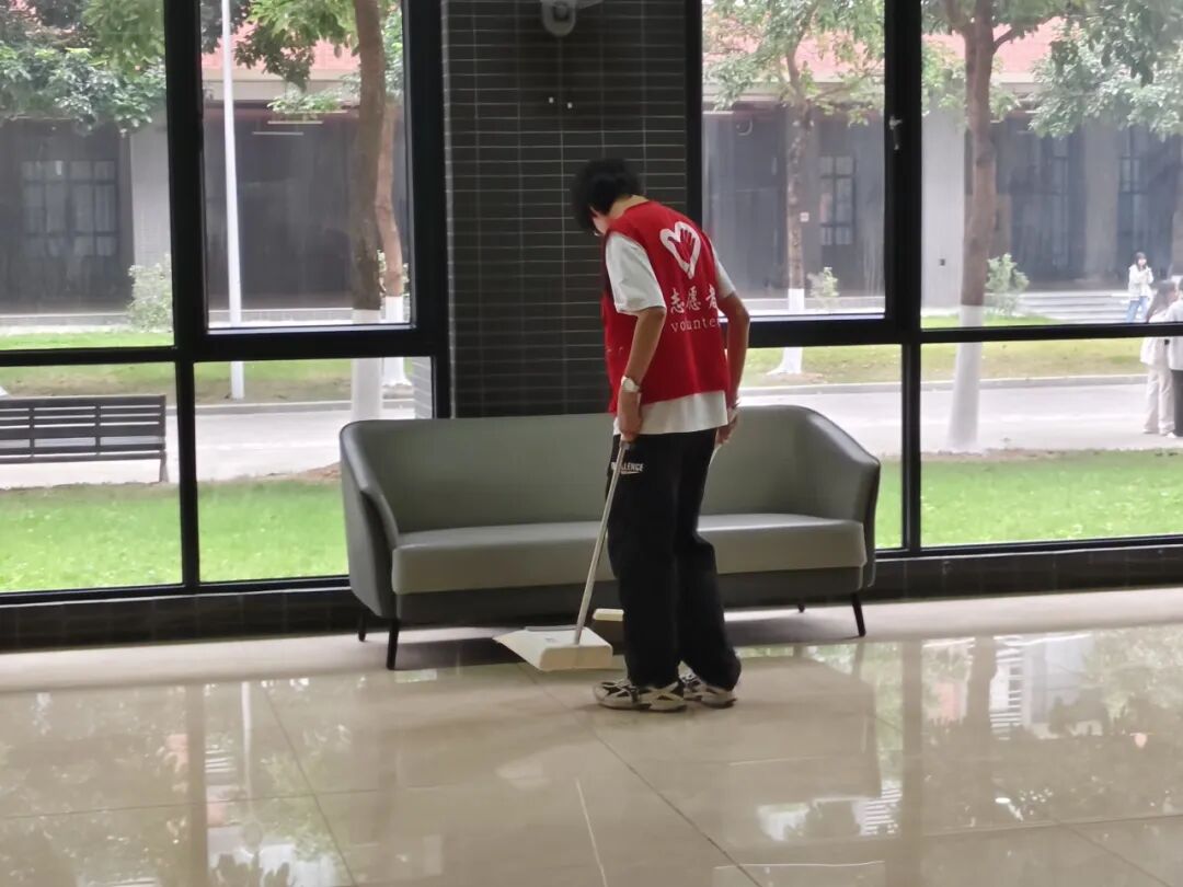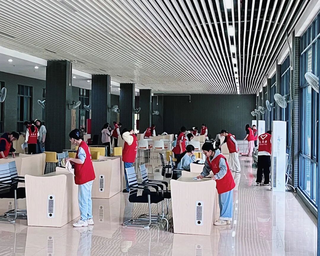 经过一个小时的共同努力,学业帮扶中心内环境焕然一新:桌椅排列整齐,地面干净明亮,学习氛围更加舒适有序。此次活动不仅改善了同学们的共学环境,也让志愿者们在劳动中体会到服务校园的成就感与归属感。