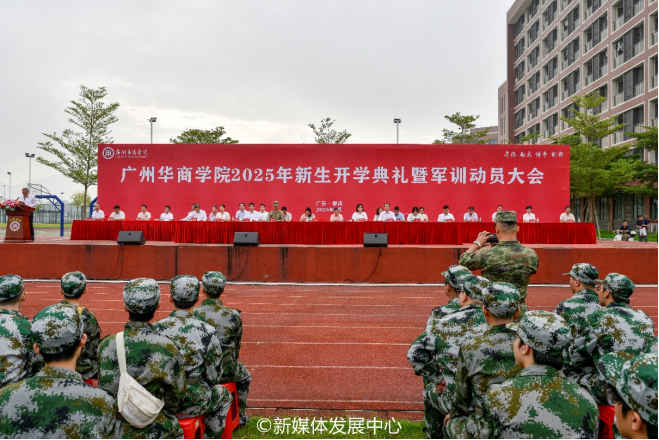 青春集结,梦想启航!9月17日、18日广州华商学院2025级新生开学典礼暨军训动员大会在广州校区、肇庆校区双校区隆重举行。全体2025级华商新人,以一场庄严的典礼,宣告大学生活的正式开启,以饱满的热情,迎接军训挑战的淬炼与成长。校长胡军,党委书记陈玉欢,副校长范忠宝、刘少波、焦方太、吕峻闽、余家军、许娜,校长助理、各职能部门及二级学院负责人、教师代表,广州校区、肇庆校区2025级全体专升本和普高新生共同参会。