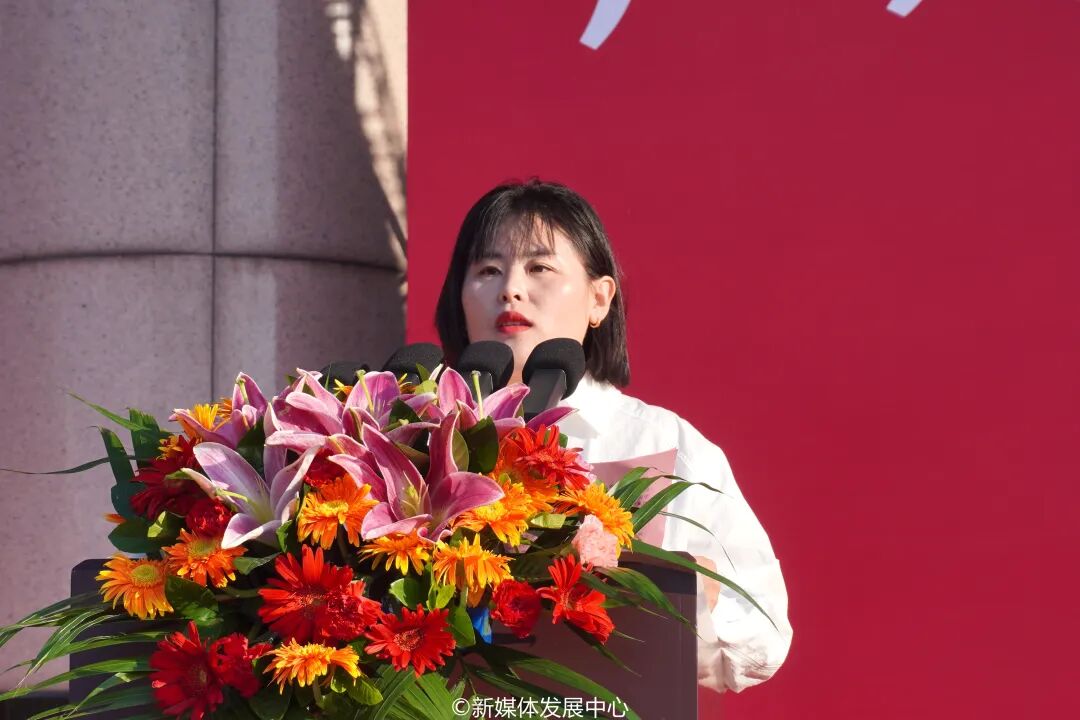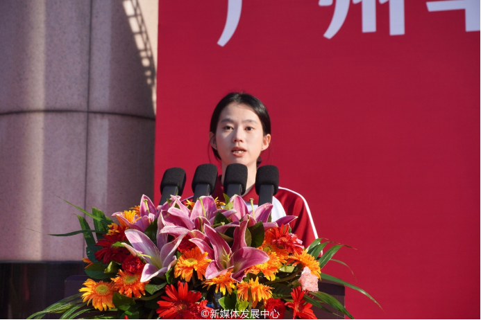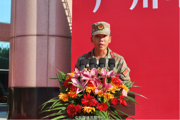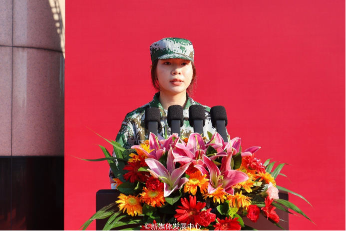 来自人工智能3班的杨子铭同学,作为2025级全体新生代表登台发言。她表示,恰逢抗战胜利80周年,军训意义非凡,是锤炼意志、传承担当的实践课,也是凝聚友谊、适应大学的加速器。她呼吁新生以军训为起点,传承爱国情、凝聚团队力、迎接新挑战。体育学院谢文均同学在发言中深刻阐释对大学自由的理解。她指出大学是自主选择与自我规划、将个人兴趣转化为专业所长的重要阶段。同时,她表示将借由军训磨砺意志品质,以实际行动践行校训精神,不负青春韶华。
