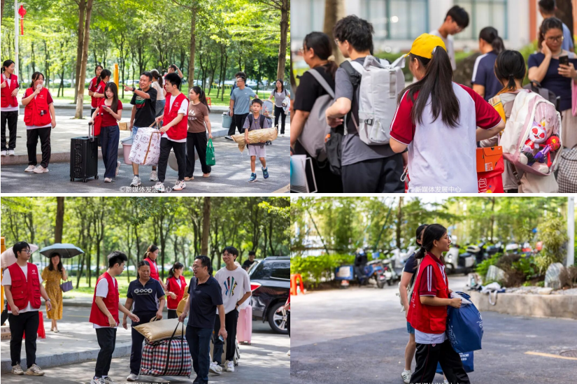 在秋意初绽的九月,广州、肇庆校区同步迎来了朝气蓬勃的2025级新生。为确保迎新工作高效、有序地进行,我校团委在双校区组织超1000名志愿者们顺利完成专升本及普高新生迎新志愿服务。从校门指引到宿舍搬运,志愿者们身着统一服装,以热情的微笑和坚实的臂膀穿梭在校园各个角落,高效协助新生完成报到,驱散了初来乍到的陌生感,用行动诠释了奉献与友爱,成为了迎新日最温暖的风景线。