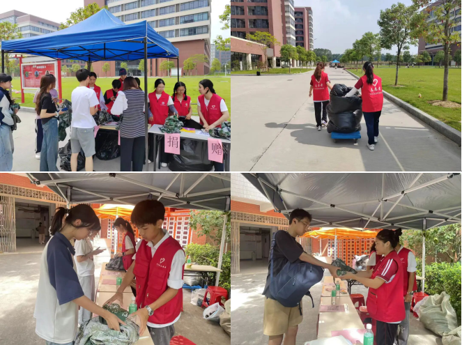 为积极响应“绿美广东”号召,推动“节能环保、绿色低碳”理念在校园扎根,9月30日,校青年志愿者协会在双校区组织开展“衣起回收,传递温暖”军训衣物回收活动,众多同学积极响应参与。活动累计回收数千件军训服装,经整理后对接公益机构实现资源再利用,践行绿色理念,传递校园温情。
