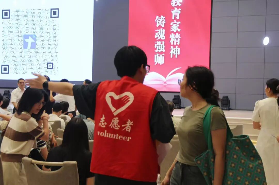 为加强师德师风建设、构建和谐师生关系,营造尊师、敬师、爱师的浓厚校园氛围,9月10日,广州华商学院在广州校区隆重举办教师节表彰大会。志愿者们协助完成嘉宾引导、秩序维护及颁奖礼仪等工作,以严谨细致的态度、热情周到的服务向全体教师致以最诚挚的节日祝福。