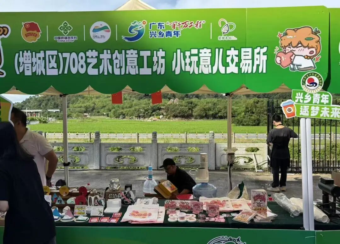 2025年“乡村运营青年CEO培育·蜜蜂计划”市级班课程间隙,“小旅” 实践团受邀参与了 “绿水青山 中意从化” 乡咖市集活动,在增城区 708 艺术创意工坊 “小玩意儿交易所” 摊位上,展示了团队围绕增城特色设计的文创产品IP——傲傲荔,将课堂所学与实践结合,通过市集平台与消费者、其他乡创青年交流互动,检验自身创意的市场吸引力,同时也为乡村特色产品的推广贡献了华商青年智慧。