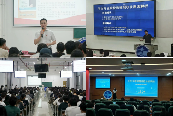 2025年9月,我校团委于双校区针对专升本大三学子开展四场“团团促就业”系列讲座——考研备考全规划公益讲座。考研规划专家陈亮伟、石磊、贾诩、谢雨蒙为近1500名同学带来了干货满满、针对性极强的备考指南,现场互动热烈,获得了同学们的一致好评,也为许多正处于迷茫期的专升本学子点亮了明灯。