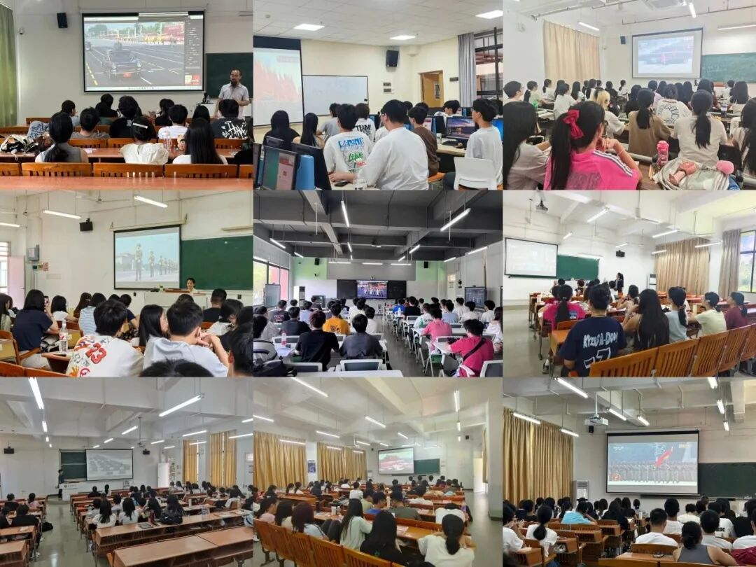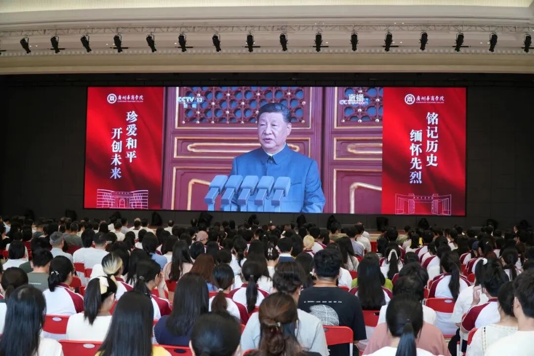 2025年9月3日,纪念中国人民抗日战争暨世界反法西斯战争胜利80周年大会在天安门广场隆重举行,我校高度重视此次重要纪念活动,提前部署,精心组织,通过集中观看和自行观看相结合的形式,设立华商国际会议中心大礼堂等五个会场,实现万人齐看的壮观场面,为广大师生上了一堂生动而深刻的“开学第一课”。共同回顾那段艰苦卓绝、波澜壮阔的光辉岁月,深刻缅怀革命先烈,感悟伟大抗战精神。
