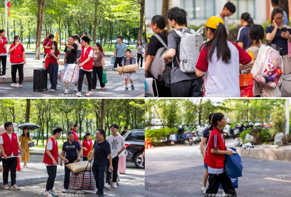 在秋意初绽的九月,广州、肇庆校区同步迎来了朝气蓬勃的2025级新生。为确保迎新工作高效、有序地进行,我校团委在双校区组织超1000名志愿者们顺利完成专升本及普高新生迎新志愿服务。从校门指引到宿舍搬运,志愿者们身着统一服装,以热情的微笑和坚实的臂膀穿梭在校园各个角落,高效协助新生完成报到,驱散了初来乍到的陌生感,用行动诠释了奉献与友爱,成为了迎新日最温暖的风景线。