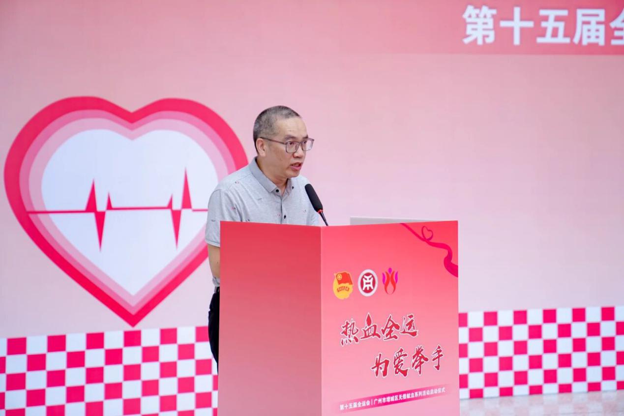 增城区卫生健康局医政科科长陆创杰代表区卫健局向关心支持无偿献血事业的各界表示感谢。他提到,第十五届全运会对增城城市运行、医疗服务尤其是血液应急保障能力提出更高要求,此次活动对储备全运会应急用血、确保赛事期间临床用血充足有很好保障作用,还倡议大家以热情和责任,为全运会、为增城和广州贡献力量。