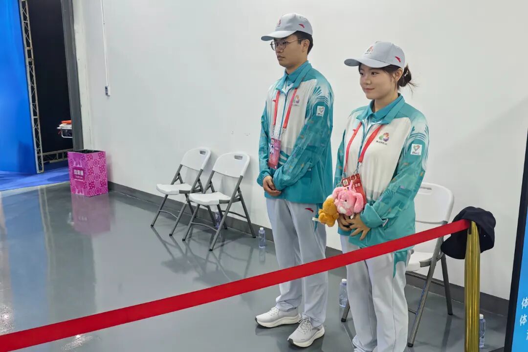 运动员队伍,会有外国教练,那么我们就涉及到语言沟通的问题,因此我们要辅助他们完成购票验票以及进场的这一个过程的工作。如有遇到残障人士前来观赛,我们也会耐心地给予指引,让他们顺利进场观赛。