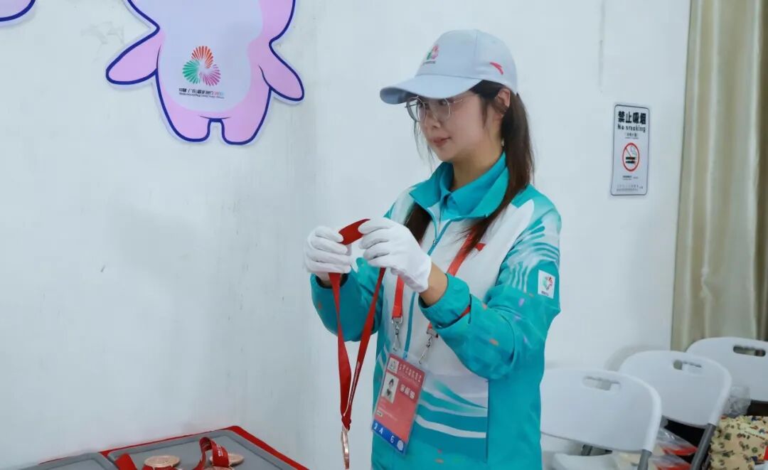颁奖物资清点志愿者协助清点整理奖牌、吉祥物等颁奖物资
