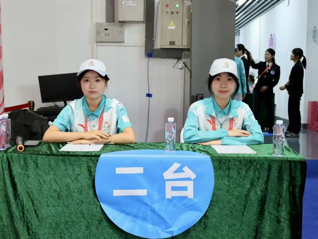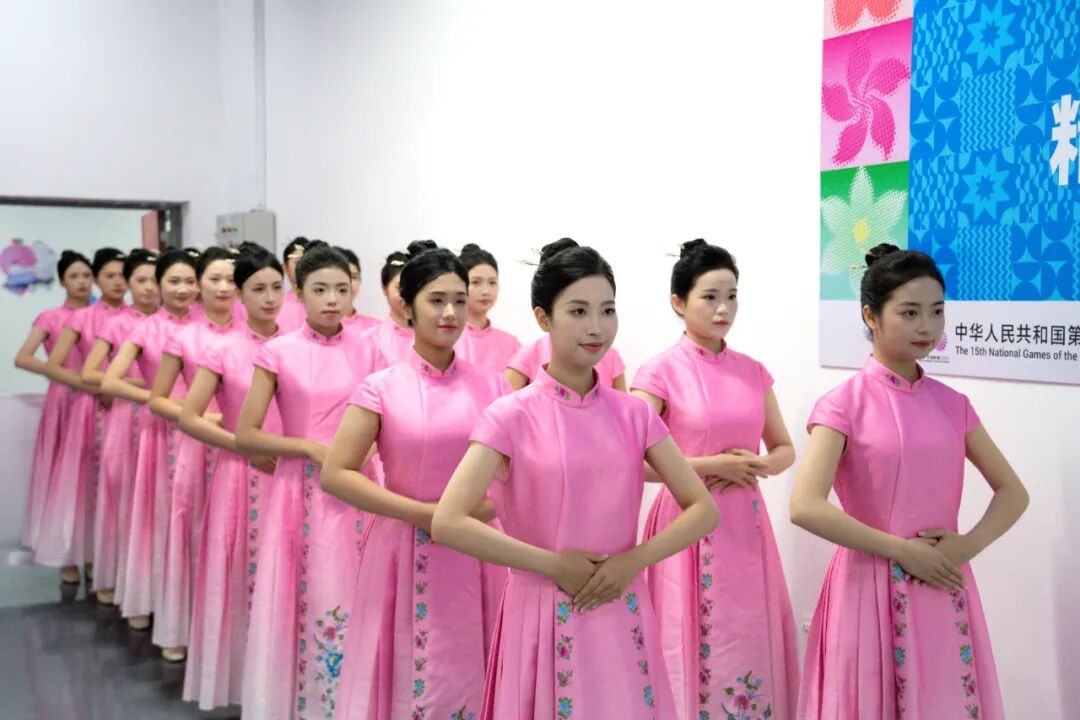 我主要是负责托盘、颁奖吉祥物,我们以“零失误”要求自己,要保持挺拔的姿态和标准的微笑。我们培训了一个多月,每天练习站姿、走路步伐要一致,然后有标准的微笑。我感觉很光荣,可以为十五运会作出贡献。