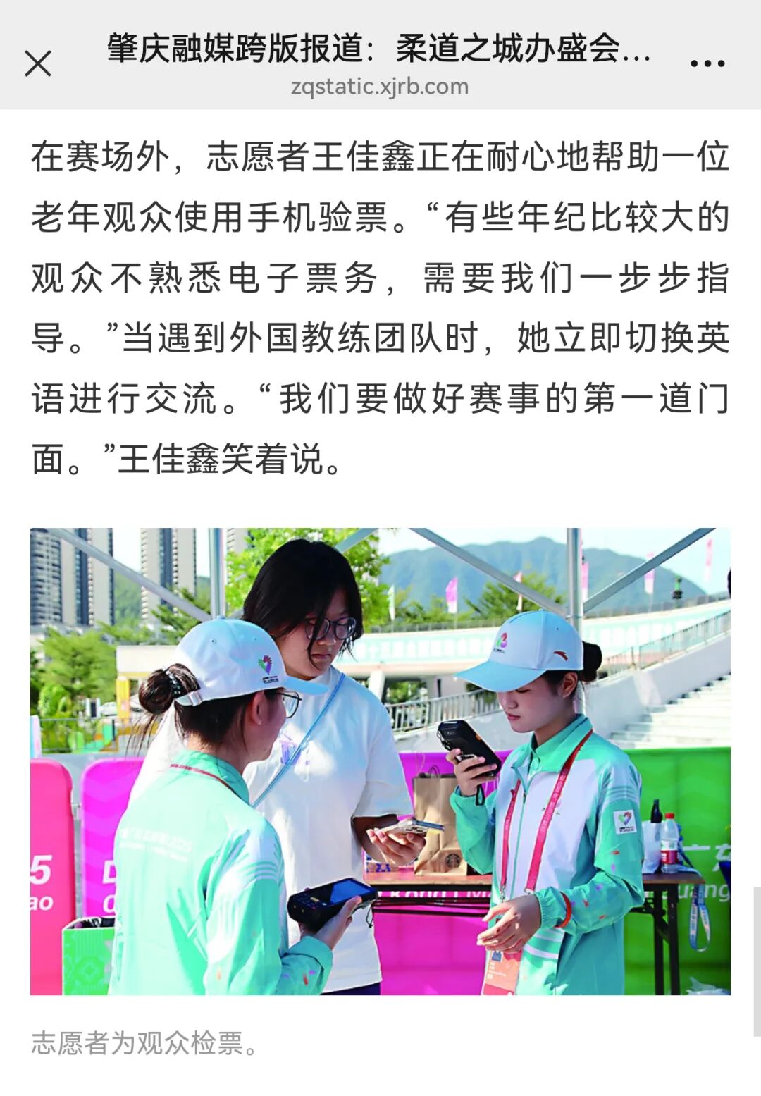 11月10日-13日,十五运会柔道比赛在四会市体育中心体育馆火热进行。运动健儿在赛场上奋力拼搏、绽放光芒;而在掌声与欢呼的背后,240名华商“小海豚”身着统一服装,穿梭于赛场内外的每一个角落。赛事期间,志愿者日均服务超12小时,累计服务时长突破16000小时,以“零失误”标准完成此次赛事志愿服务工作,获参赛选手及观众一度好评,为湾区添彩,为祖国争光,为成功举办一届“简约、安全、精彩”的体育盛会贡献华商志愿力量。截至目前,华商“小海豚”志愿服务受南方+、肇庆+、西江日报、四会电视等多家媒体报道。