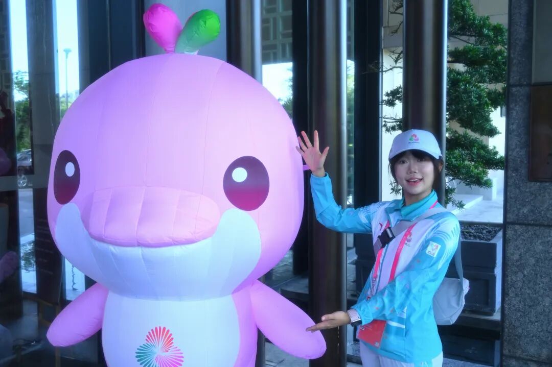 我是小海豚张曦文。我的任务是和其他小海豚一起接待和欢迎来自全国各地的技术官员,其中既有爽朗的北方技术官员,同时也有技术官员能熟练使用粤语交流。因此,上岗的时候,我的语言系统在普通话和粤语来回切换,真切地感受到十五运不仅是全国的体育竞技的盛会,更是全国体育文化交融的生动舞台,鲜活诠释着粤港澳大湾区的开放姿态与多元魅力。同时,作为一名广州人,能够亲眼见证并且成为这场赛事的其中一员,心里有着说不出的愉悦。我将热情与爱包含在每一句欢迎技术官员的话语里:“激情全运会,活力大湾区,广州欢迎您!”