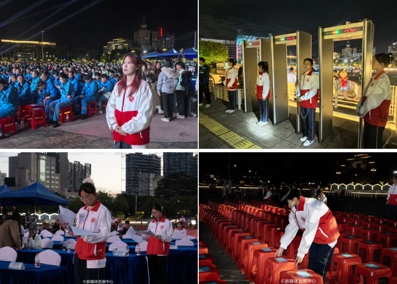 11月21日晚,2025中国·四会玉文化节(第21届)开幕式暨颁奖晚会在四会市人民广场举行。晚会的顺利运转,离不开幕后志愿者们的默默付出。他们分散在入场检票口、嘉宾引导、观众指引、颁奖礼仪、吉祥物人偶、展销区等关键岗位。他们以全方位的服务确保了晚会流程的顺利运转,用实际行动诠释了“奉献、友爱、互助、进步”的志愿精神。