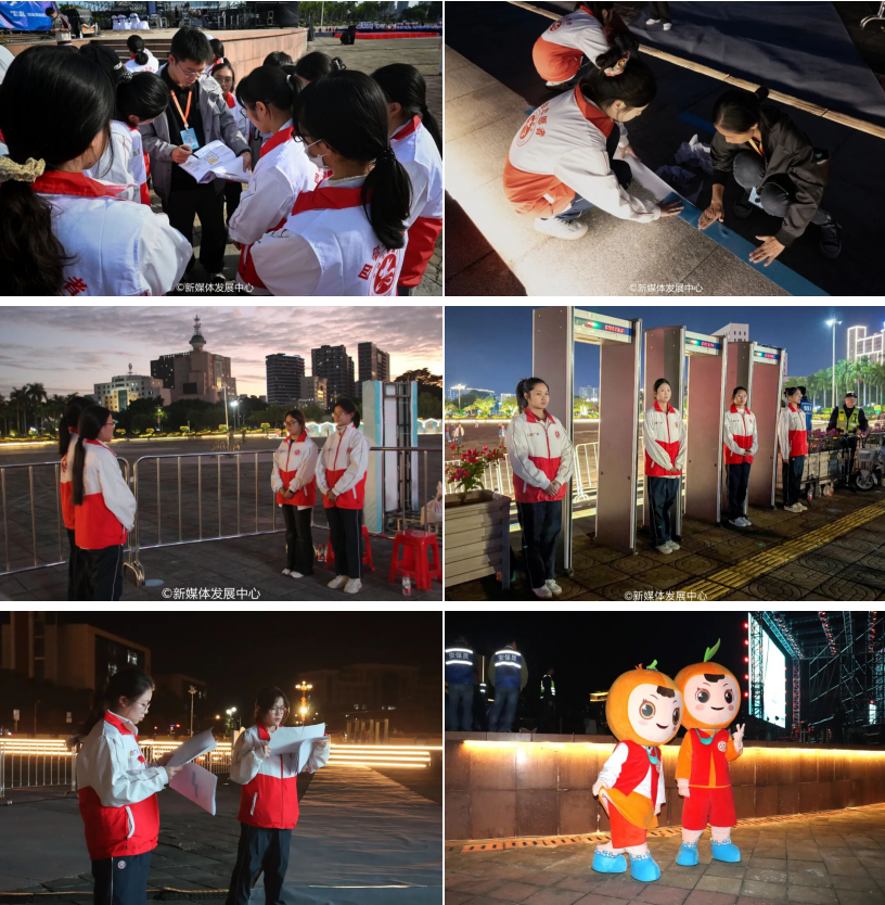 11月21日晚,2025中国·四会玉文化节(第21届)开幕式暨颁奖晚会在四会市人民广场举行。为深入贯彻落实团省委关于广东省青年大学生“百千万工程”突击队行动的部署要求,引导广大华商青年积极弘扬志愿服务精神,投身基层实践,服务人民群众,学校团委联合团四会市委组织超150名志愿者参与本次玉文化节志愿服务。