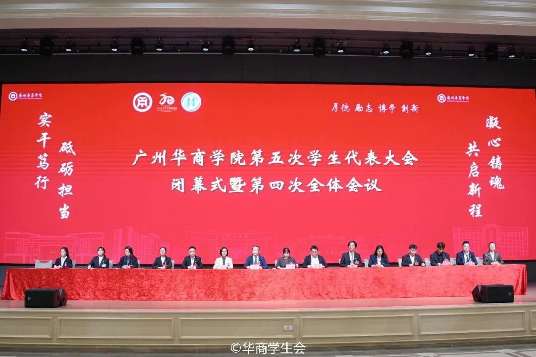 ——大会闭幕式暨第四次全体会议。12月14日16:30,广州华商学院第五届学生代表大会闭幕式暨第四次全体会议在广州校区会议展览中心华僖礼堂召开。校党委副书记、纪委书记吕峻闽副校长,校党委委员、许娜副校长,校纪委委员、党委保卫部杨燕平部长,校团委陈刚书记,校院两级团学老师、各学生代表出席本次会议。