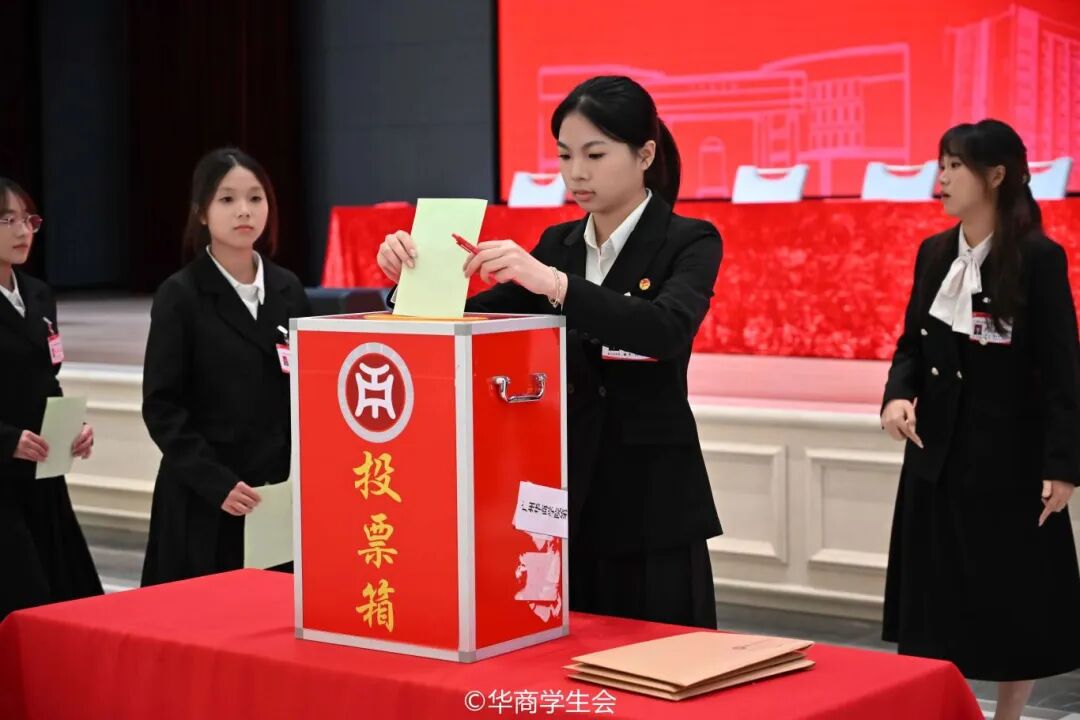 大会听取并审议《广州华商学院第四届学生会工作报告》。开幕会式后,投票选举等环节有序进行,选举产生新一届学生会委员会委员和主席团成员。