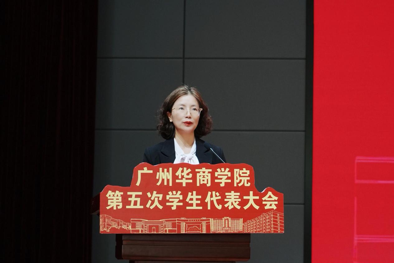 校党委委员、党委办公室吕书勉主任致开幕词。她指出,本次学代会正值学校推进“十五五”规划、冲刺本科教学合格评估、献礼二十周年校庆的关键节点,是全体学子参与学校建设、共绘未来的盛事。她表示,学校正以高质量发展为主线,奋力建设高水平应用型大学。学生会应继续凝聚同学,把青春动能转化为服务学校发展、区域建设的澎湃力量。最后,吕书勉主任宣布广州华商学院第五次学生代表大会隆重开幕,并预祝大会圆满成功。