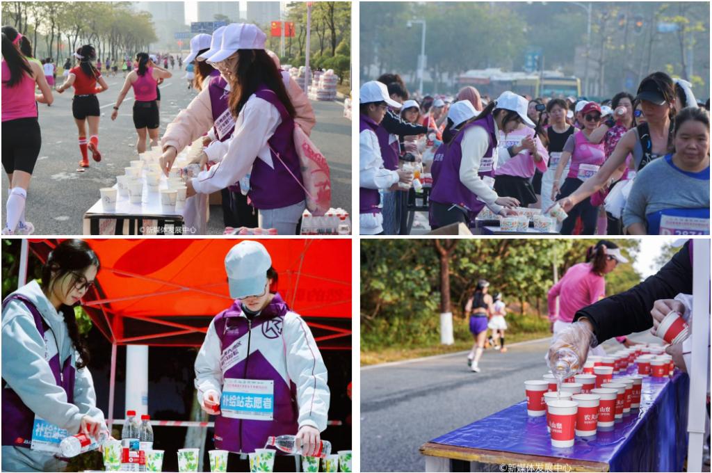 在5km、7.5km、10km、15km、17.5km、20km等服务点,华商青年志愿者穿梭其中,为即将到来的赛事忙碌不停,搭建帐篷、布置饮水站、饮料站、补给站、食品区,将物资整齐码放在指定区域,确保补给站的物资充足齐全。